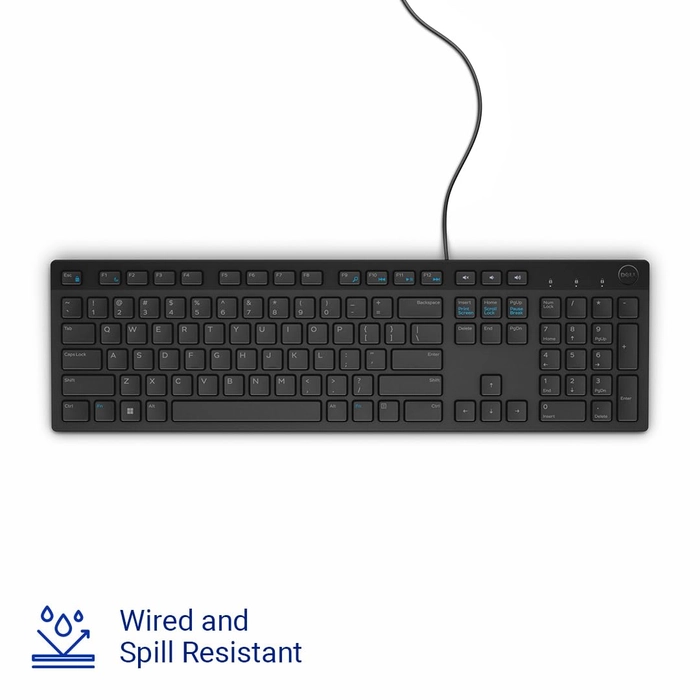 Dell KB216 Multimedia USB Wired Keyboard with Plunger Keys and is Spill-Resistant – Black
